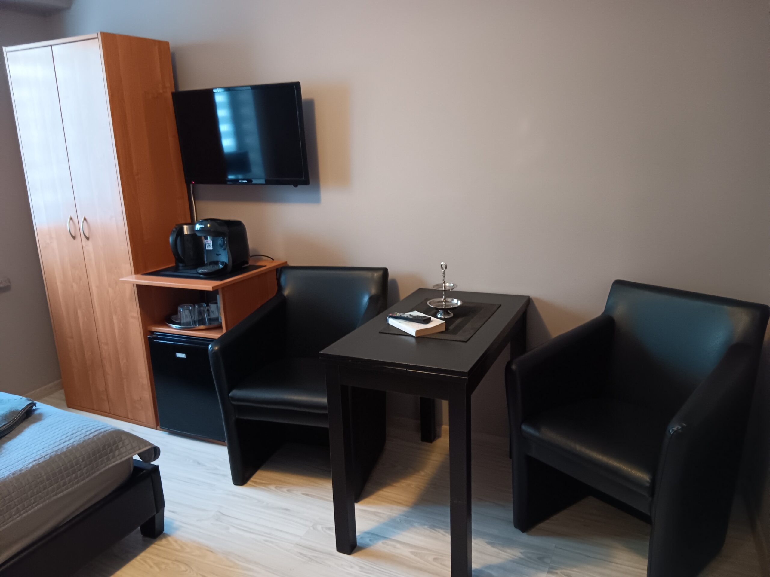 Jego wystrój oparty na stonowanych barwach sprzyja wypoczynkowi, a wygodne łóżko małżeńskie zapewnia spokojny sen. W ramach udogodnień do dyspozycji gości jest prywatna łazienka z prysznicem, telewizor z kanałami satelitarnymi oraz lodówka, w której można przechowywać napoje i drobne przekąski.