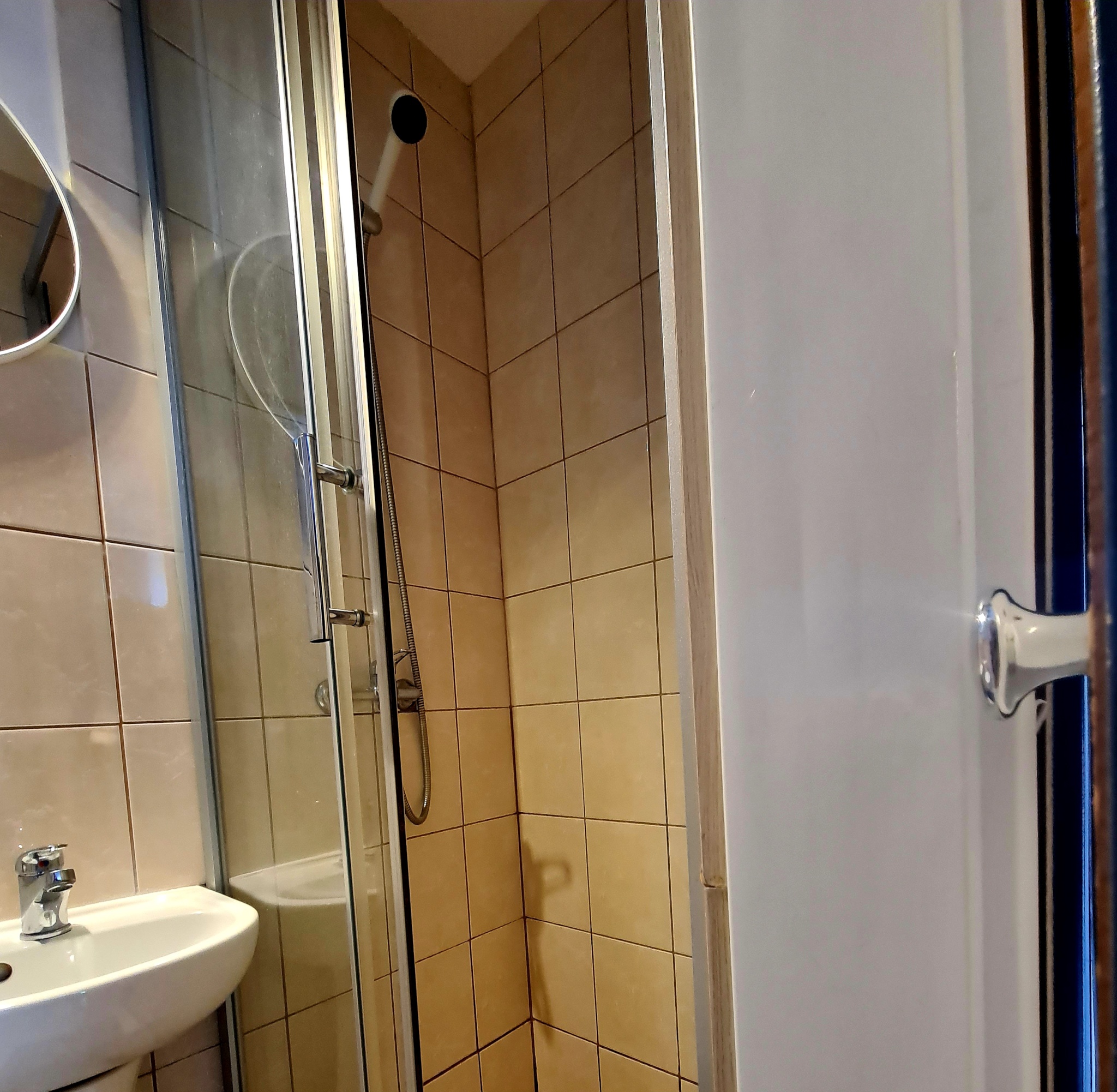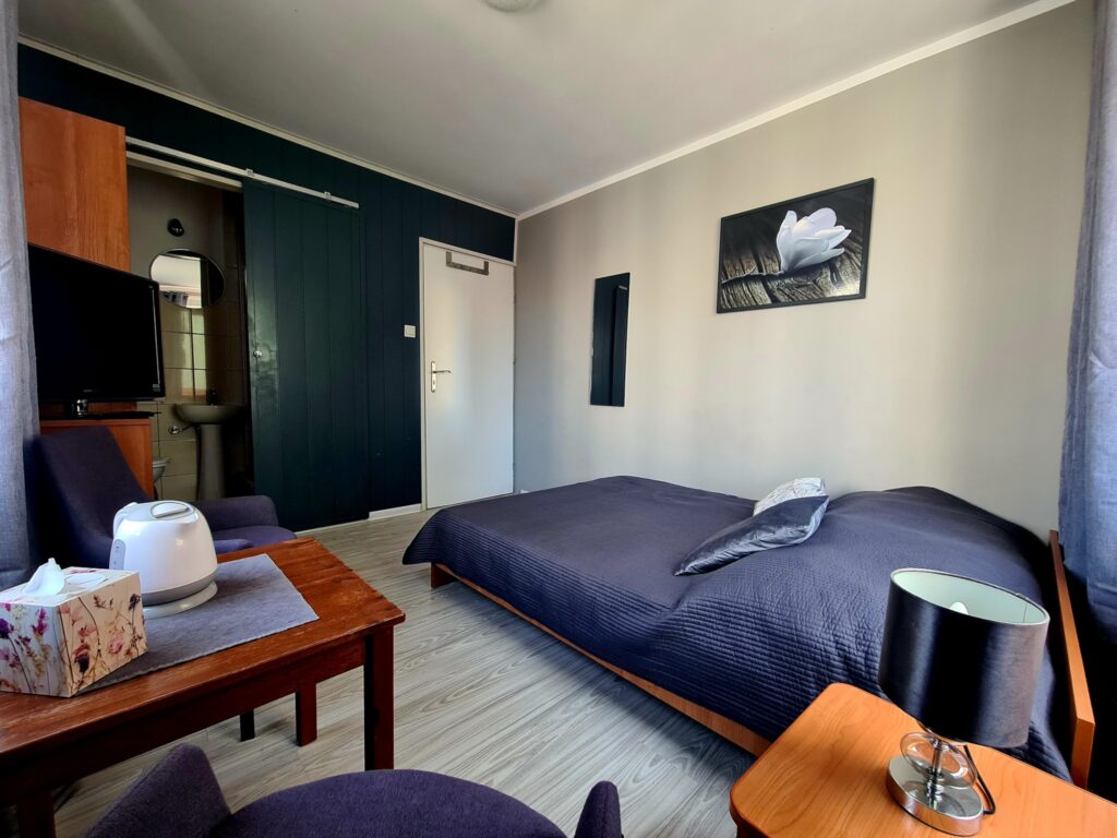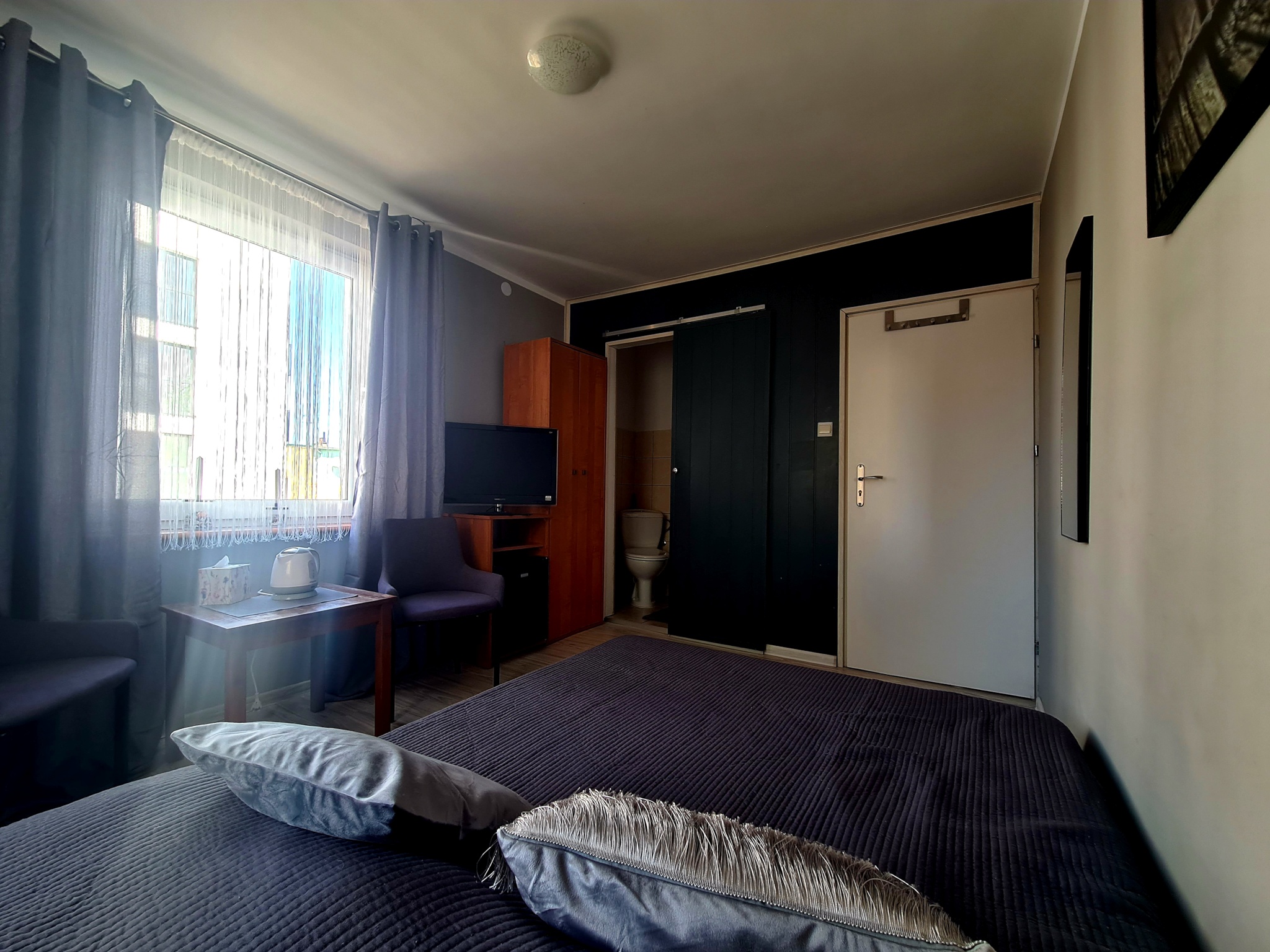 Dla pełnego komfortu gości pokój wyposażono w prywatną łazienkę z kabiną prysznicową, telewizor z dostępem do kanałów satelitarnych oraz lodówkę umożliwiającą przechowywanie napojów i przekąsek.