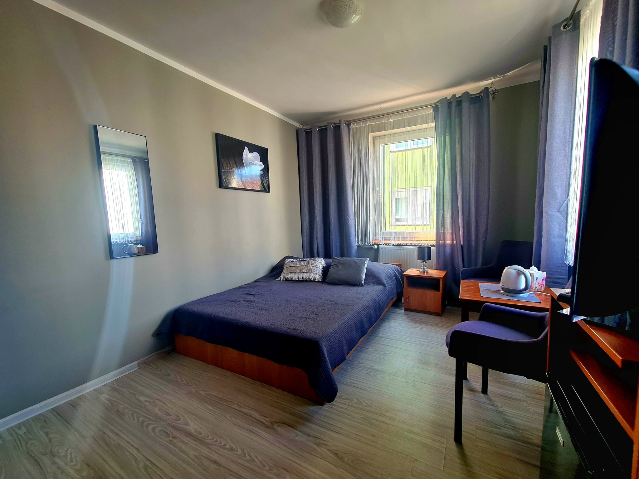 Elegancki i funkcjonalny pokój przeznaczony dla dwóch osób.
